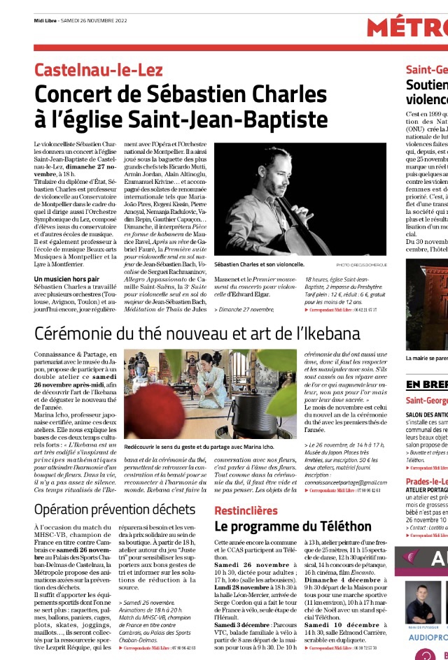 Le journal Midi Libre a présenté mes activités de l’atelier d’ikebana et la cérémonie du thé au musée japonais à Castelnau-le-Lez.