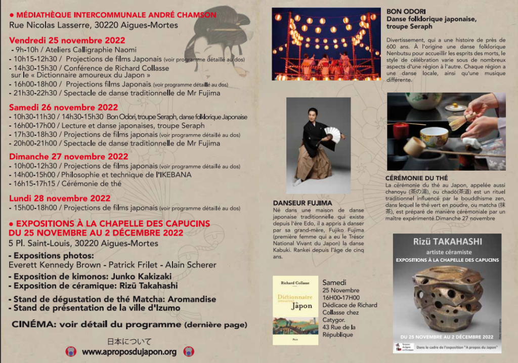 Je participerai à l’évènement de la Semaine du Japon en Occitanie le dimanche 27 novembre à Aigues-Mortes avec l’association A Propos du JAPON.