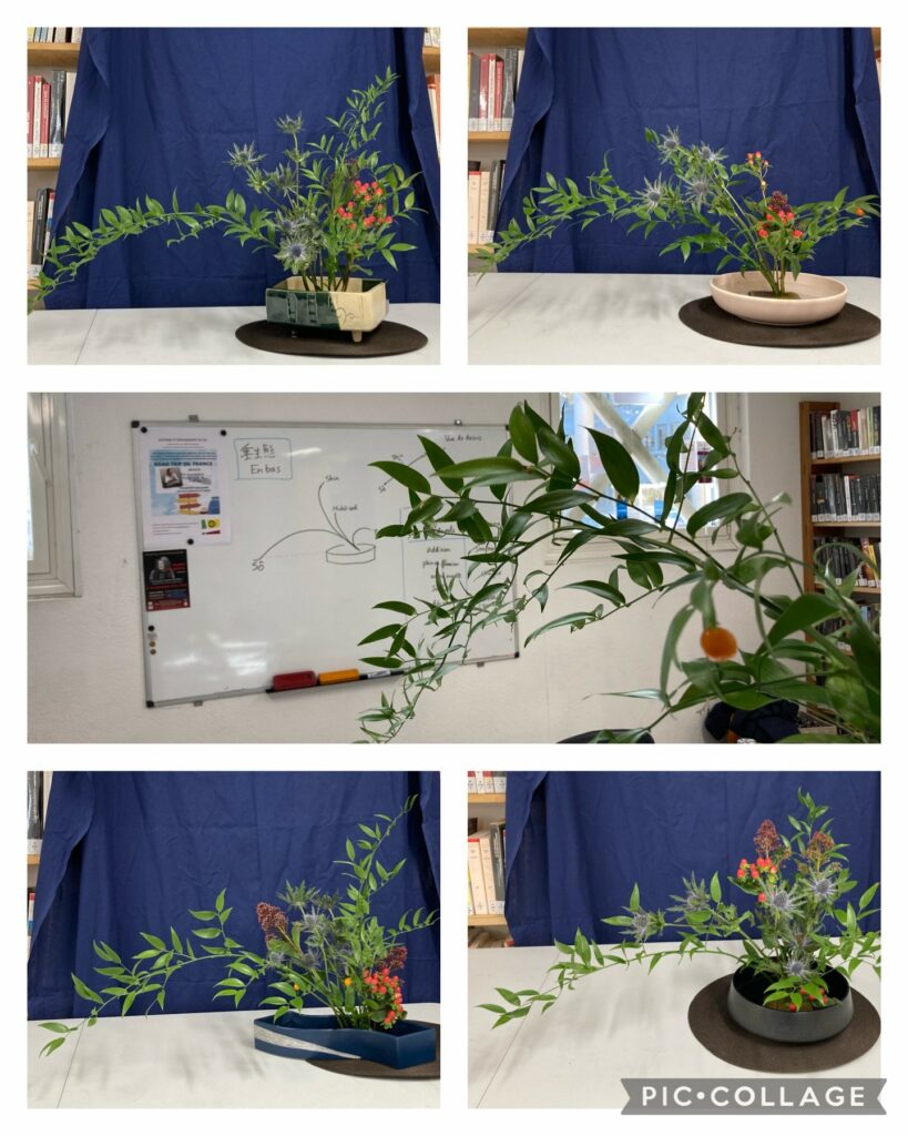 Nous avons créé des compositions florales dans la forme en bas en utilisant des branches de ruscus.