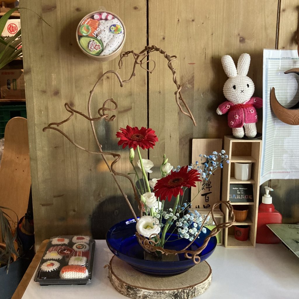 J’ai réalisé une composition florale pour le 14 juillet cette semaine. Autrement dit, la création se compose des fleurs tricolore.