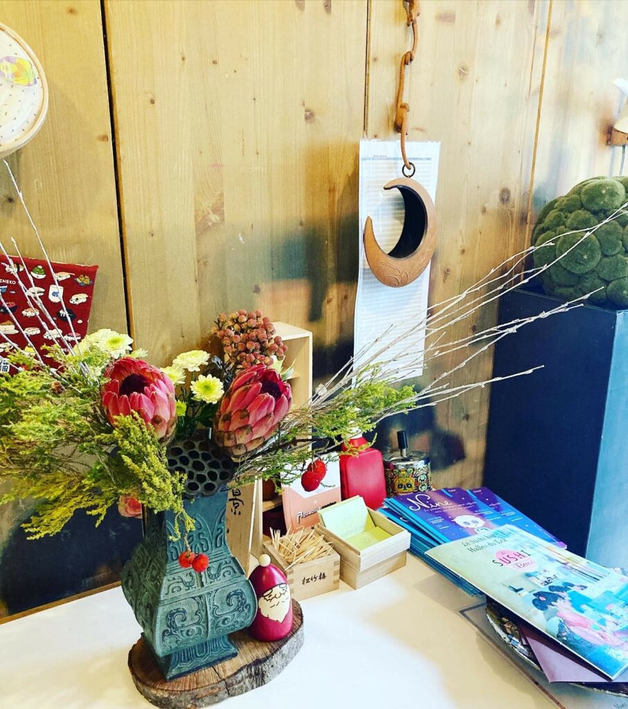 J’ai composé une création florale au thème de Noël dans les pays tropicaux car j’aimerais créer une différente ambiance par rapport à l’image classique pour cette période.