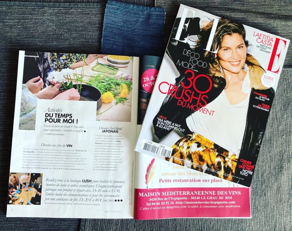 I’m honored to announce you that my Ikebana lessons were introduced in the magazine ELLE published on Oct 5.