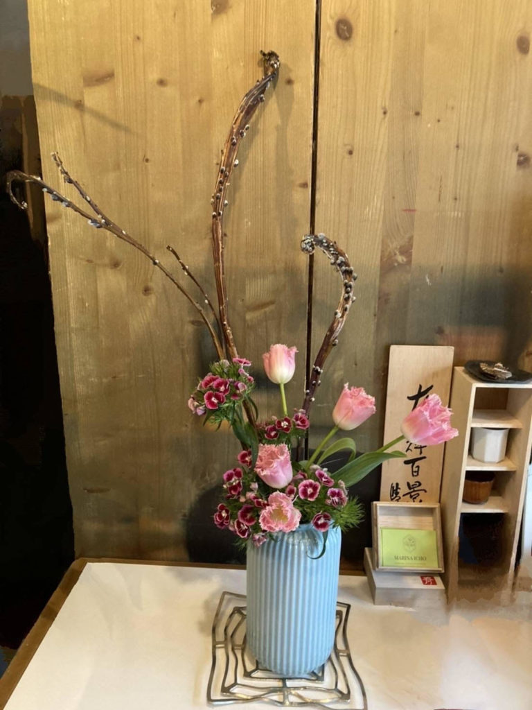 石化柳は矯めやすい枝なのですが、そのままの状態で既に独特な形をしているので、あまり手を加えなくても1本1本の枝ぶりを十分に楽しめる花材だと思います!