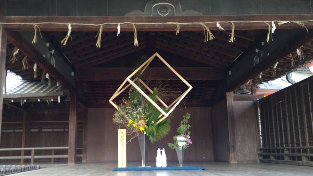 毎年1月4日には京都の八坂神社にて流派の初いけ会があり、生け花の奉納があります。
