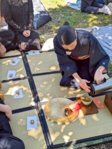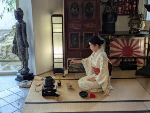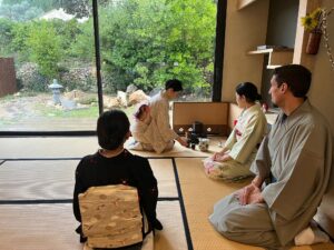 La cérémonie du thé ce n’est pas que boire du thé vert. C’est aussi la recherche du calme, de la sérénité de la communication par delà les mots et de pouvoir reproduire tout cela dans la vie quotidienne.