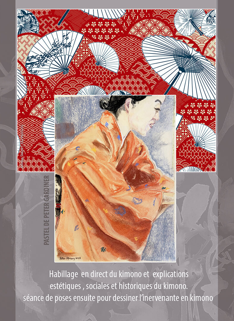 J’animerai un stage de kimono à l’atelier du Singe Vert avec artiste peintre Nathalie le 19 mars. Le stage se compose de la démonstration d’habillage du kimono, la présentation de l’histoire et le type du kimono, et le dessin de quelque poses d’une femme en kimono. N’hésitez pas à contacter si ça vous intéresse. A