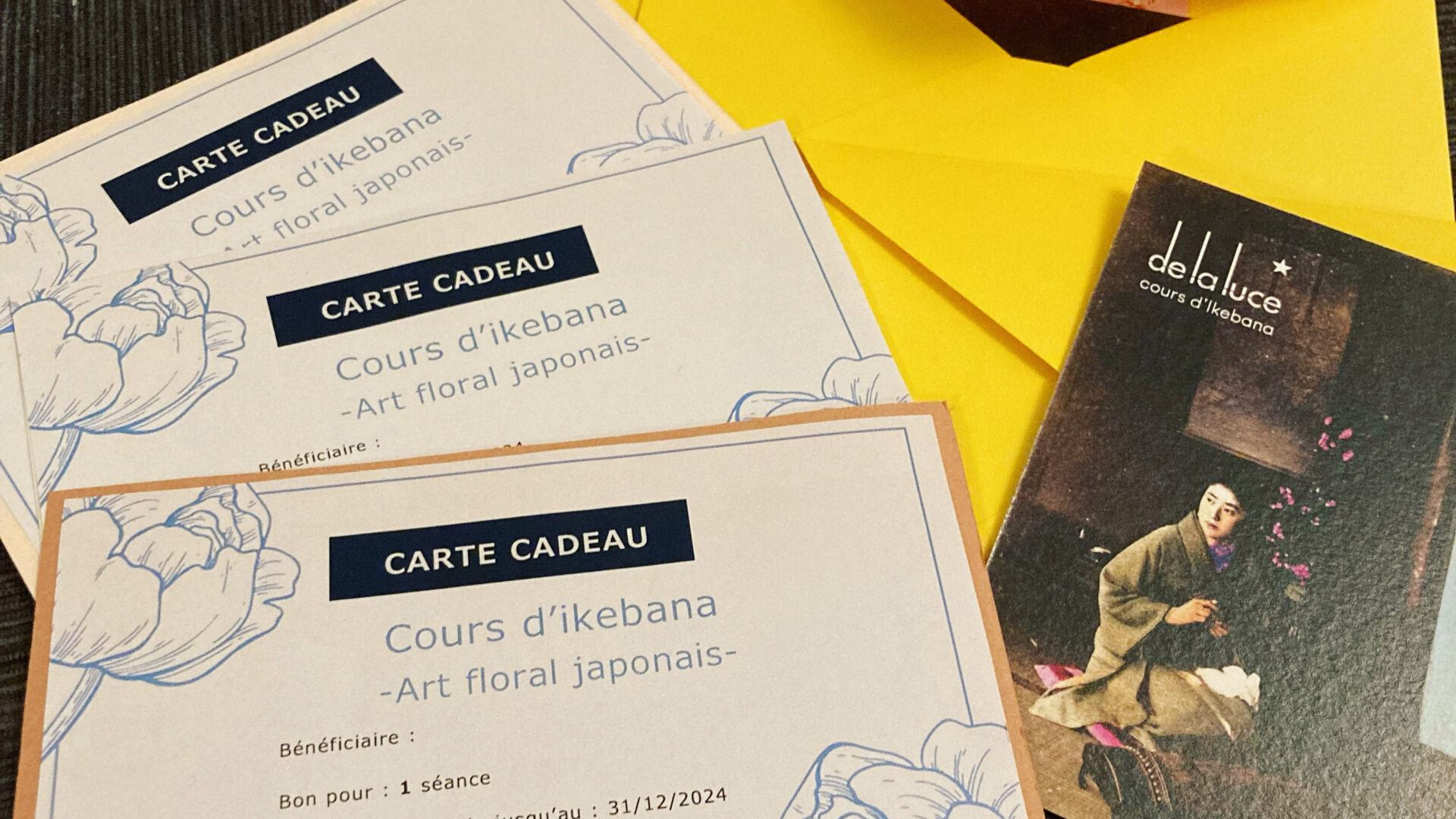 Je remercie ceux qui ont choisi mes cours d’ikebana en tant que carte cadeau pour Noël et pour l’anniversaire! N’hésitez pas à me contacter si vous souhaitez offrir une expérience unique à vos proches qui adore les fleurs, la nature, l’art ou la culture japonaise… Je suis impatiente de réaliser des créations florales avec eux