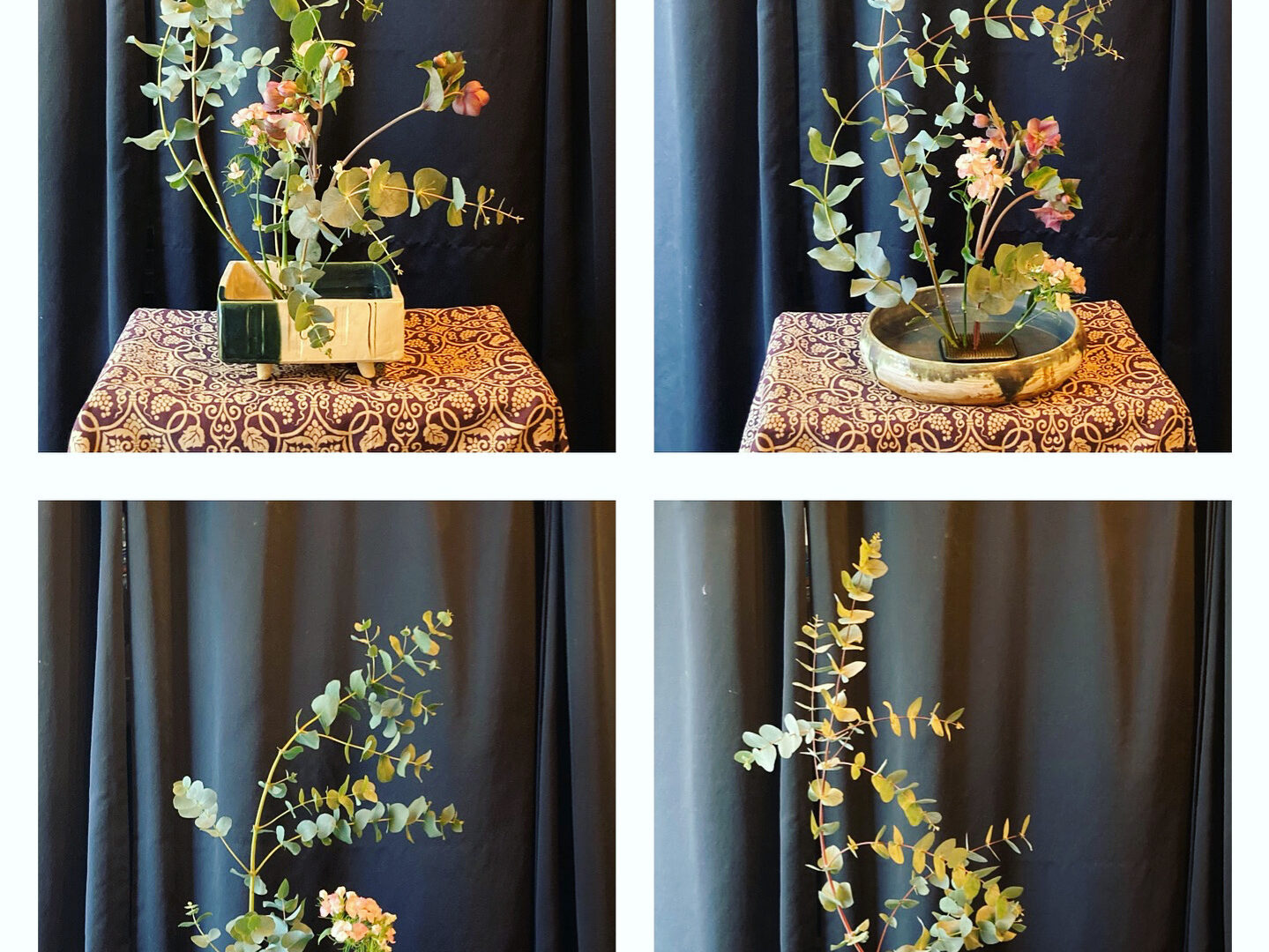Atelier d’ikebana le 23 mars Nous avons pratiqué la forme à droite en utilisant des branches d’eucalyptus.
