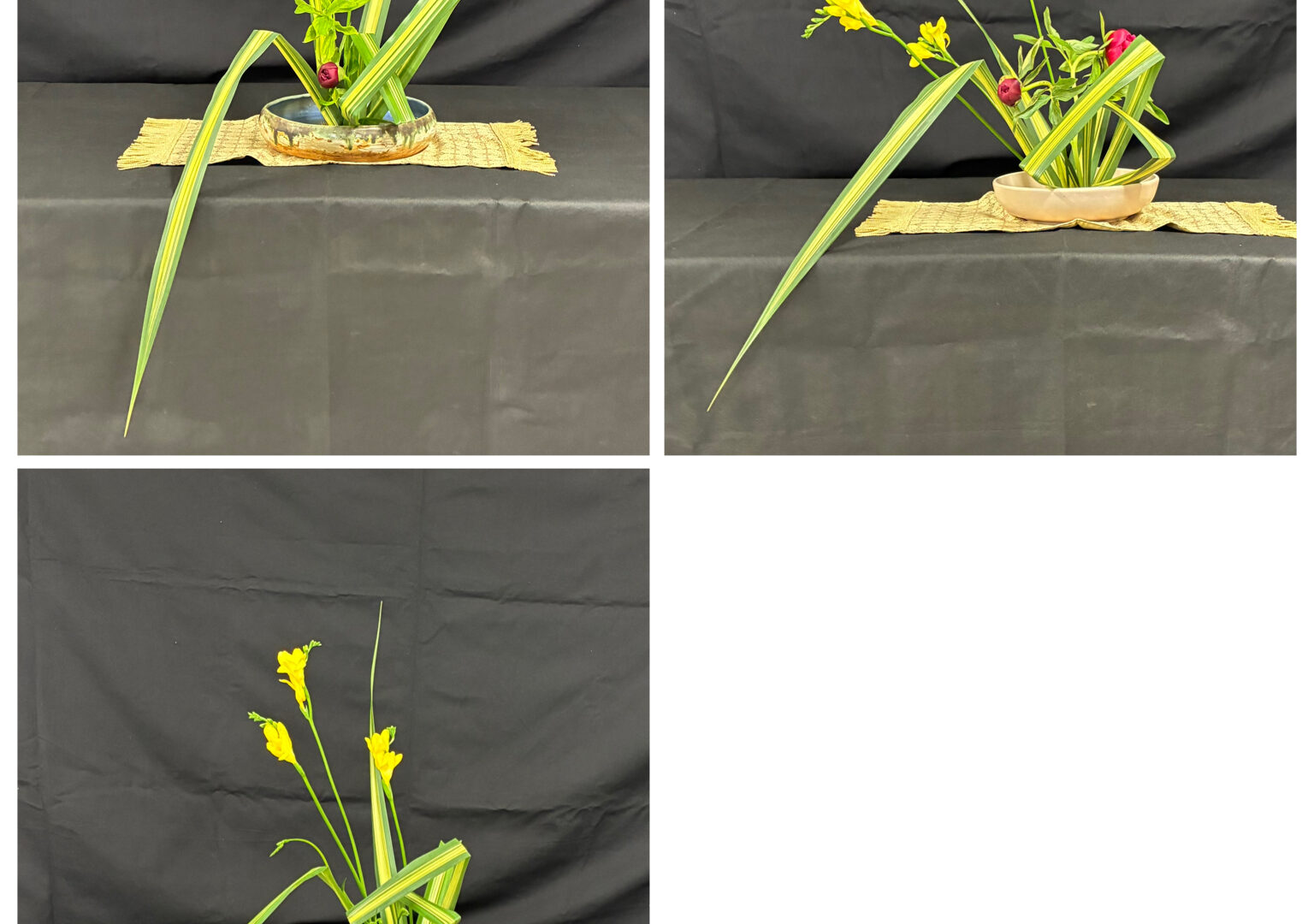 Nous avons pratiqué l’ikebana avec des feuilles de pandanus.