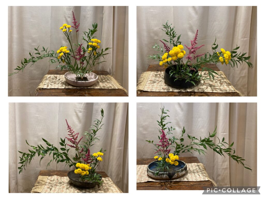 Cette semaine nous avons pratiqué en employant des Ruscus d’Italie pour apprendre la forme courbée.