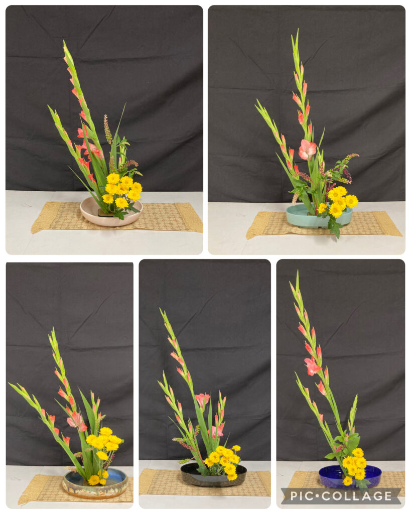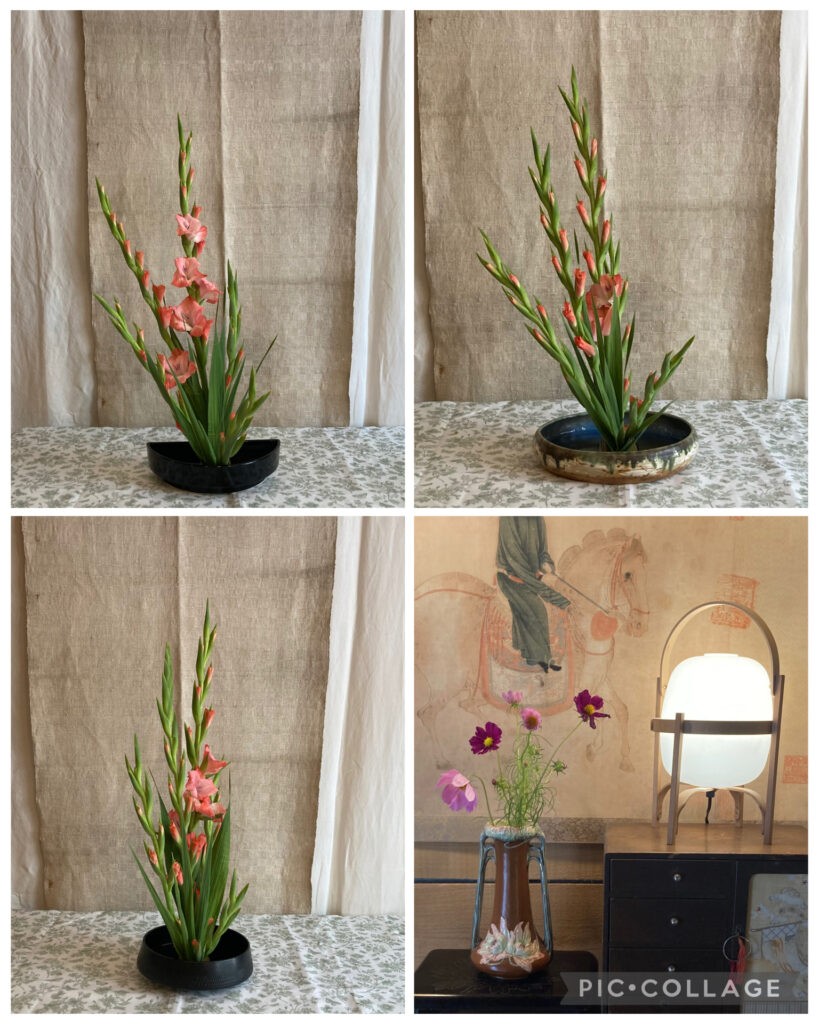 Nous avons appris quelques formes d’ikebana avec des glaïeuls.
