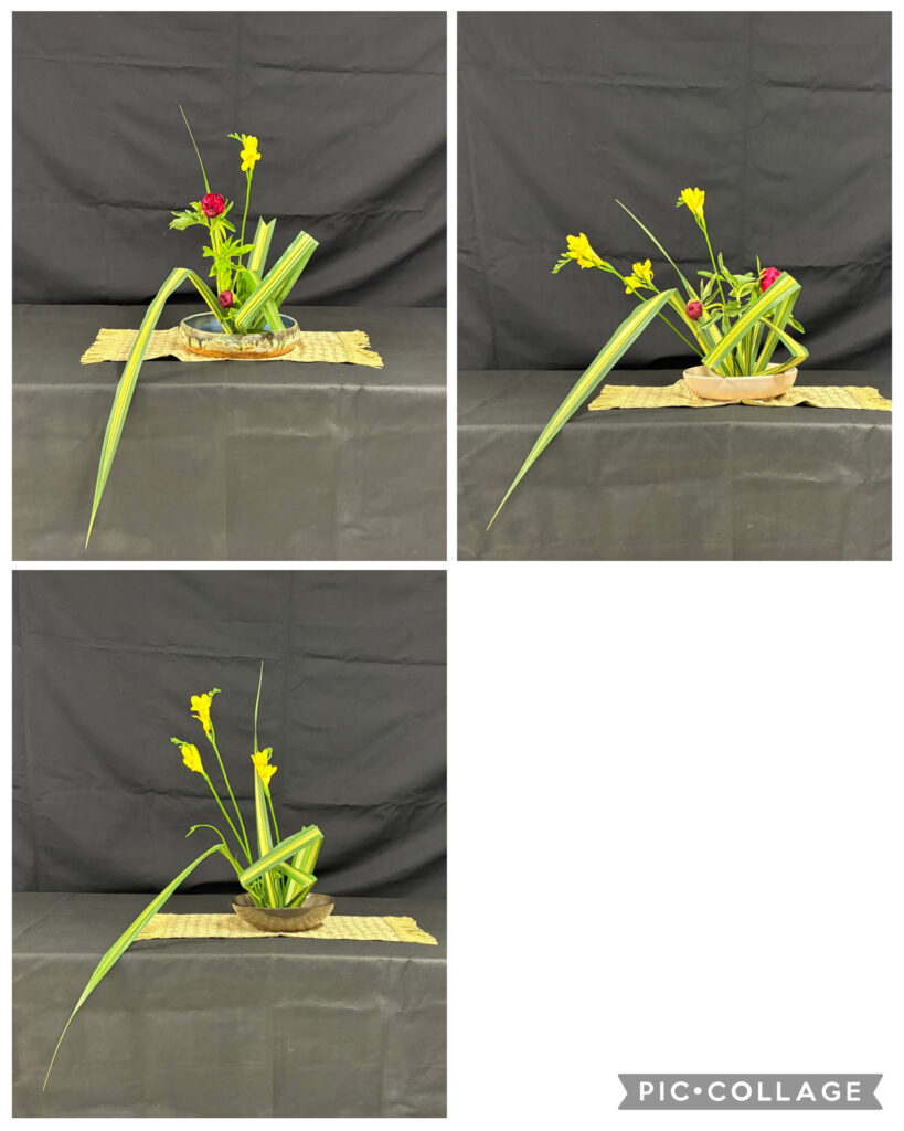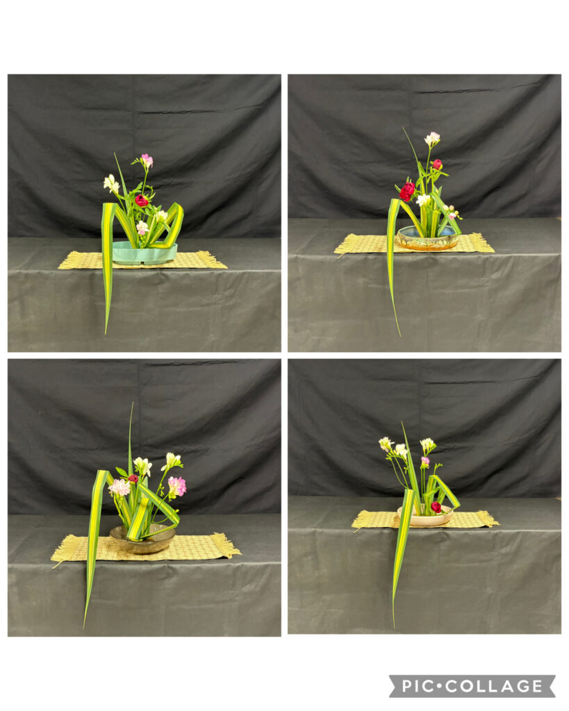 Nous avons pratiqué l’ikebana avec des feuilles de pandanus.