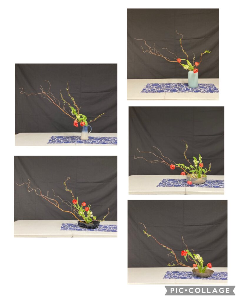 Nous avons étudié l’ikebana en utilisant des branches de saule tortueux.