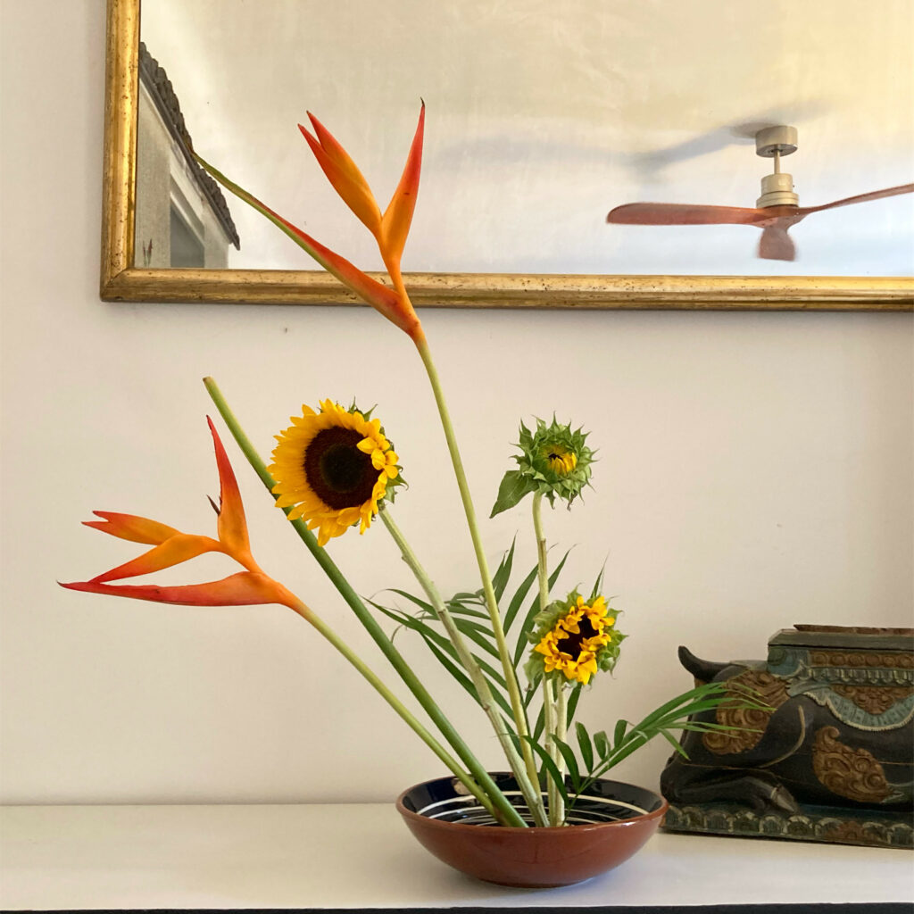 Je suis allée chez client pour animer un cours privé d’ikebana pour son anniversaire. C’était son amie qui m’avait contacté pour lui offrir un carte cadeau d’ikebana.