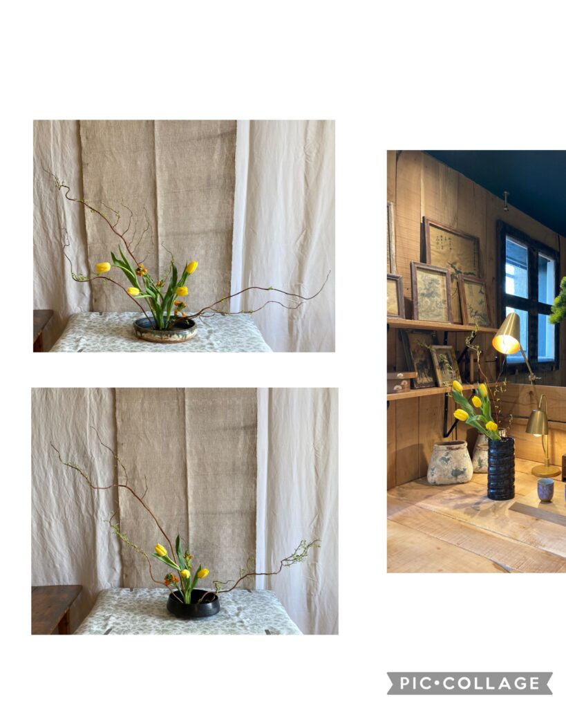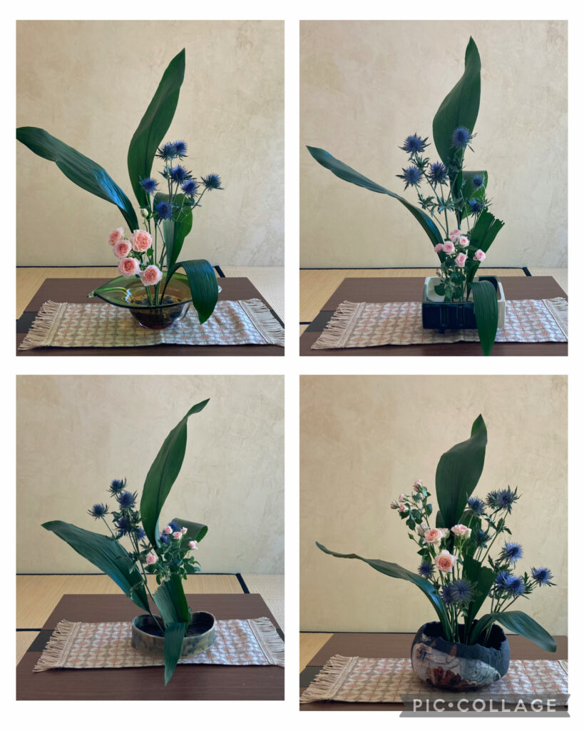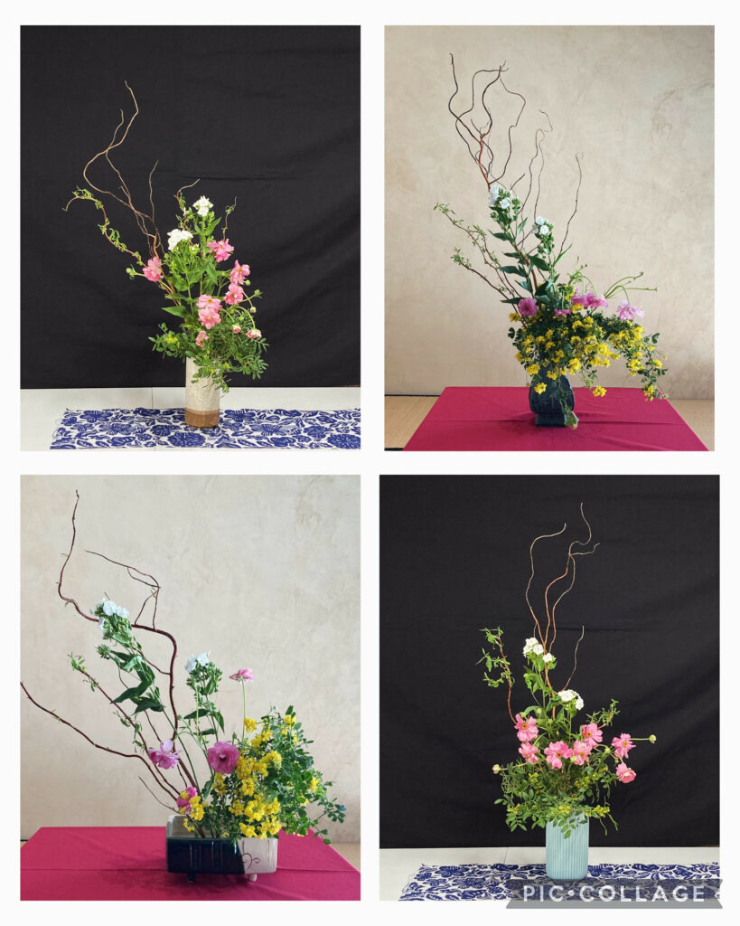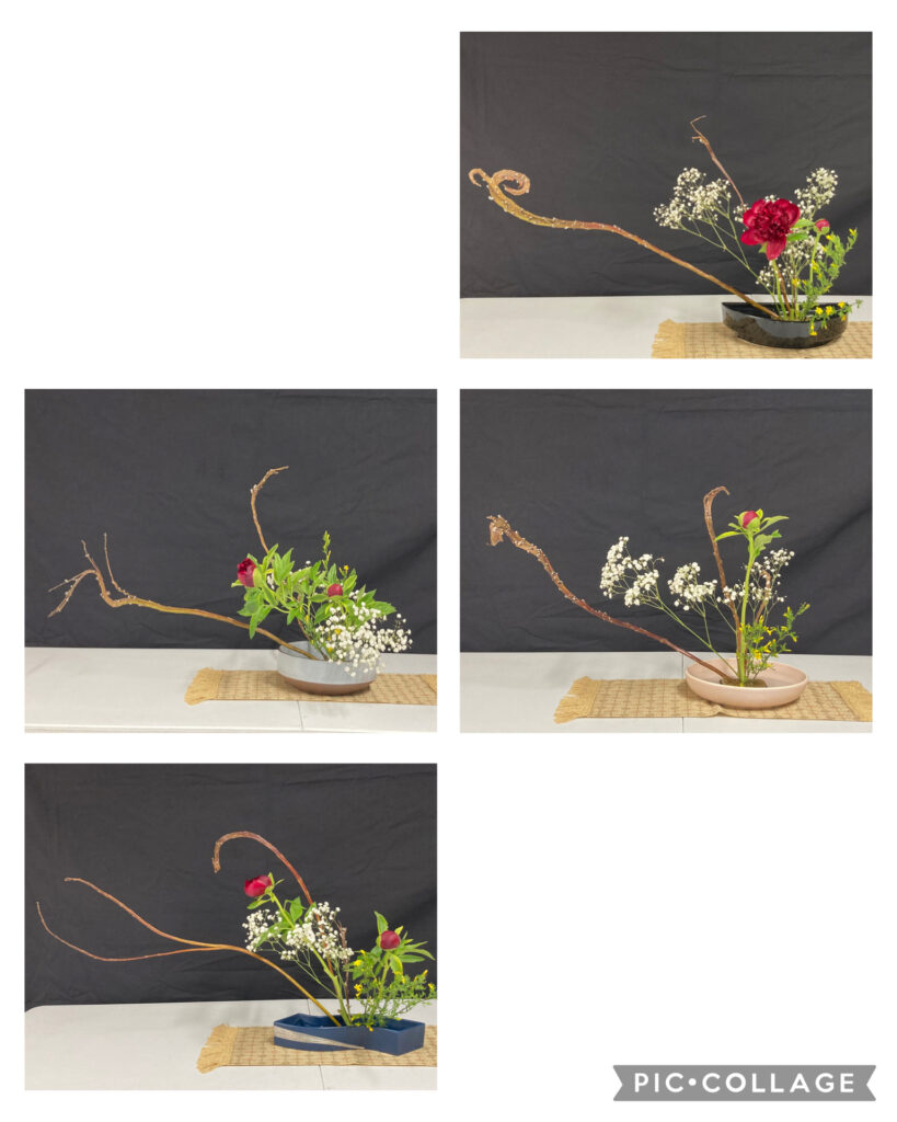 Nous avons utilsé les limoniums colorées pour réaliser la composition d’ikebana...