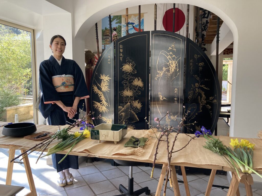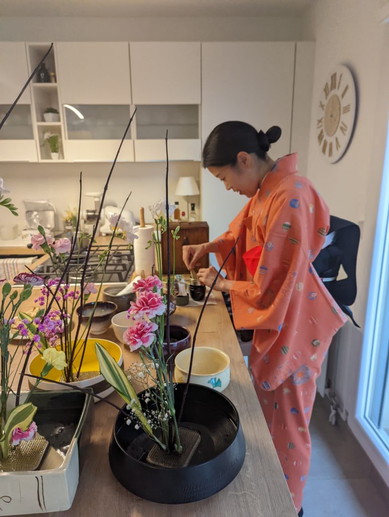 Ikebana and tea ceremony at l’Atelier du Singe Vert