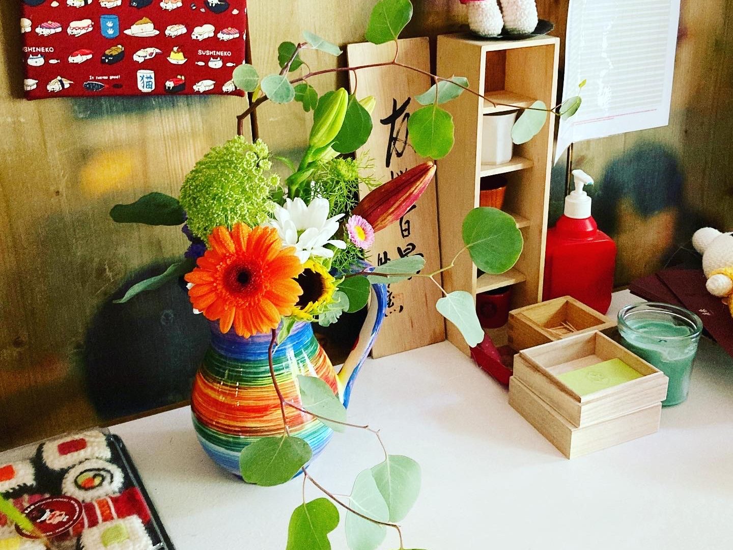 I got the branches of ground cherry at flower shop this week. It was the first time to see them here in Montpellier, so I was really happy to use them for the ikebana work as they are very popular flower materials in Japan. In Japan, we use them at the period of Obon around