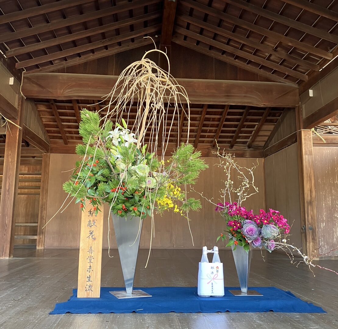 Happy New Year! I wish you all the best for 2024. Here is the photo of the first composition Ikebana of the year 2024 created by the professors of Kidou-mishoryu Ikebana school. These compositions are dedicated at the Yasaka Shrine in Kyoto. I hope this year will bring you lot of happiness and joy.