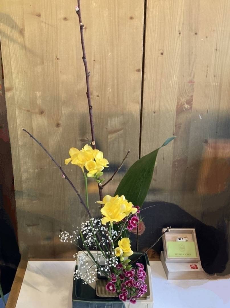 今週の生け込みは桃の節句をイメージして生けました!菜の花の代わりに黄色のフリージアを使いました。 こちらに来て