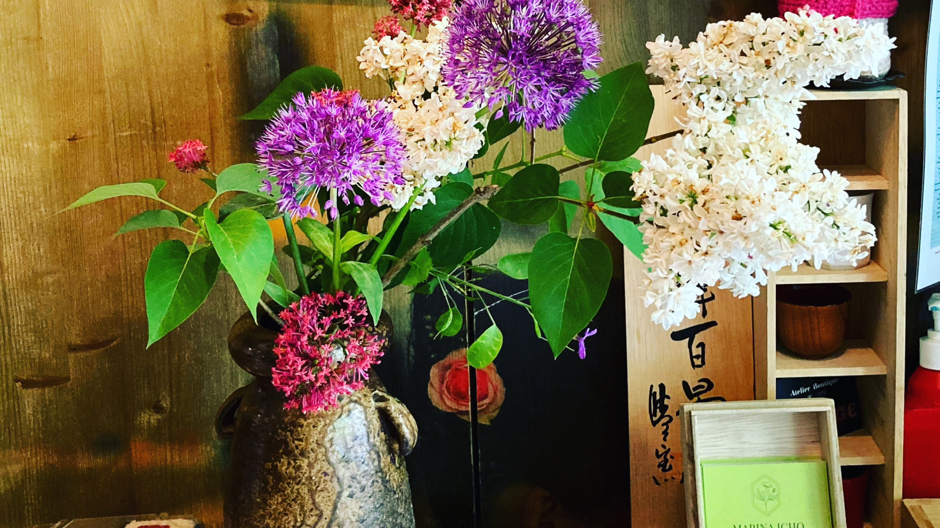 昨日はいけばな展「初夏」の最終日で、展示をさせて頂いたお花屋さんのカフェにていけばなのワークショップを行いまし