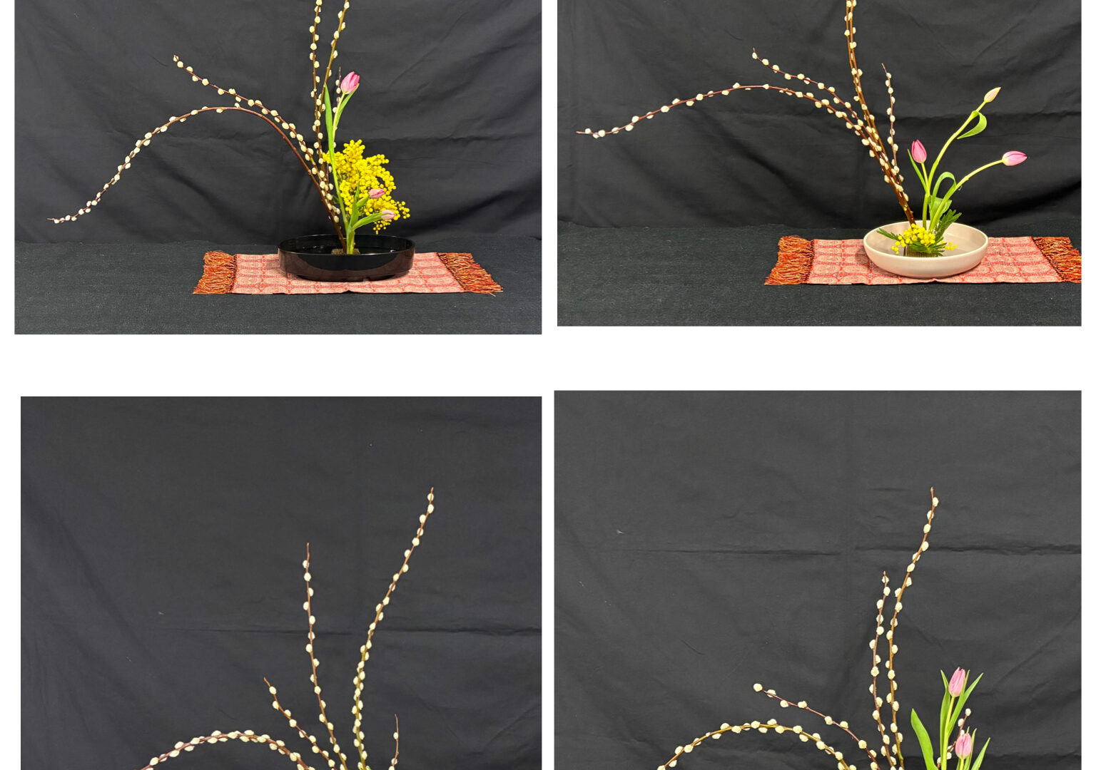 C’était la reprsie des cours ce week-end. Nous avons étudié la forme traditionnelle en employant des saules à chaton. Merci d’y avoir participé malgré la pluie!