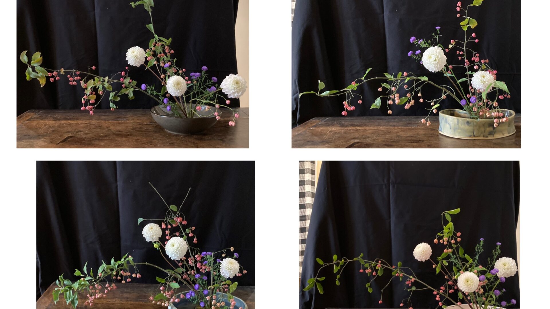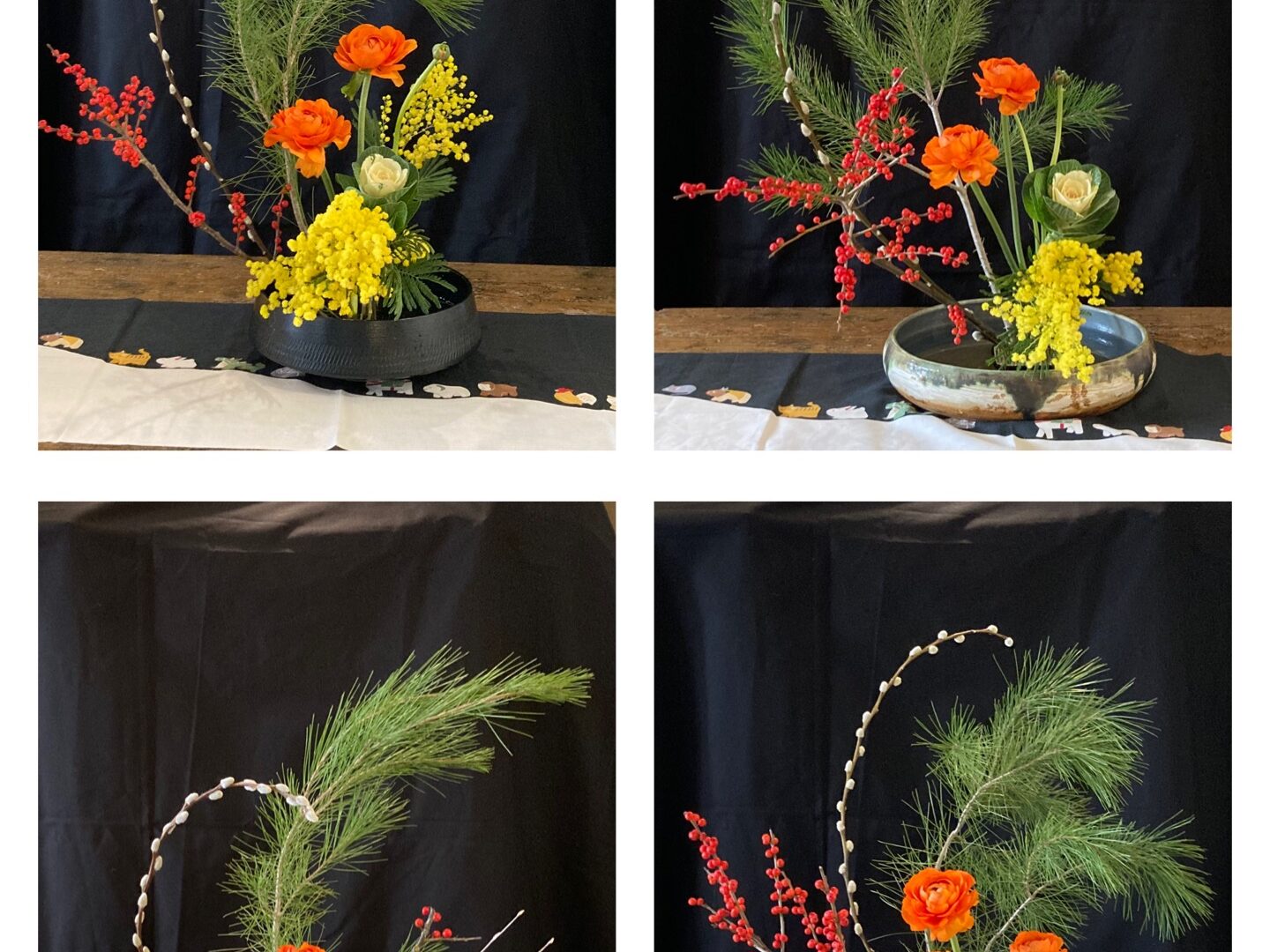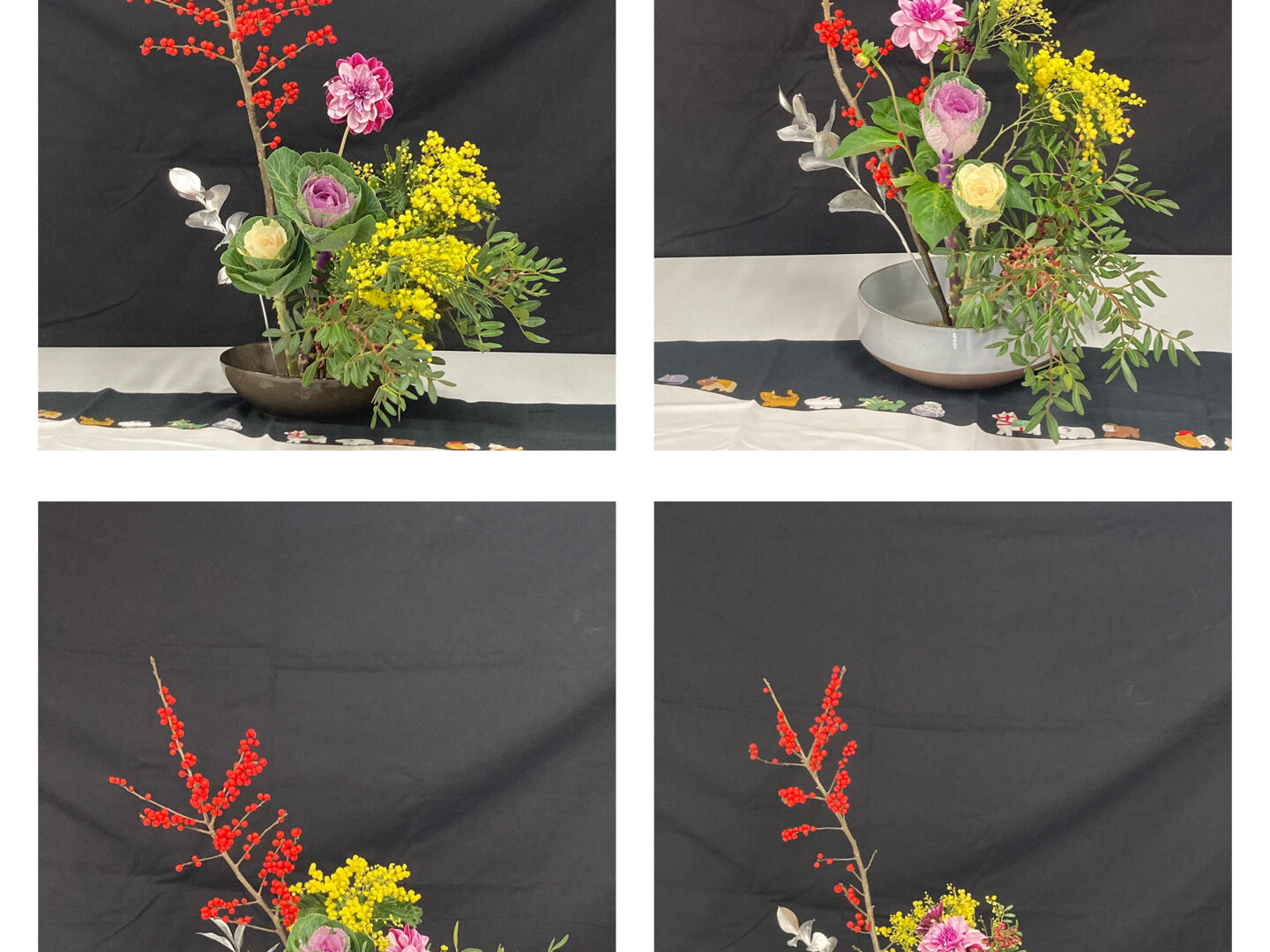 Nous avons étudié deux formes dans un vase en utilisant des saules à chaton et des tulipes. C’est toujours intéressant de pratiquer la forme traditionnelle afin d’apprehendir l‘ikebana.