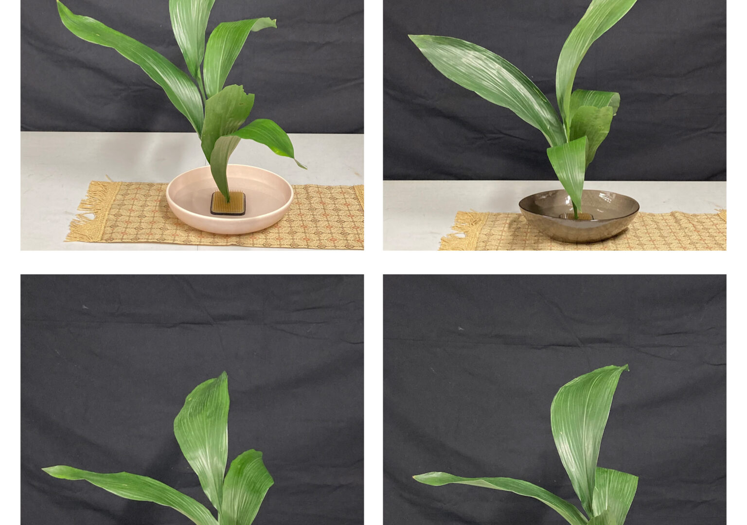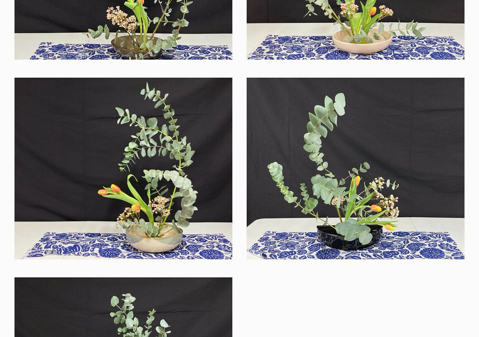 Nous avons étudié l’ikebana en employant des ruscus d’Italie.