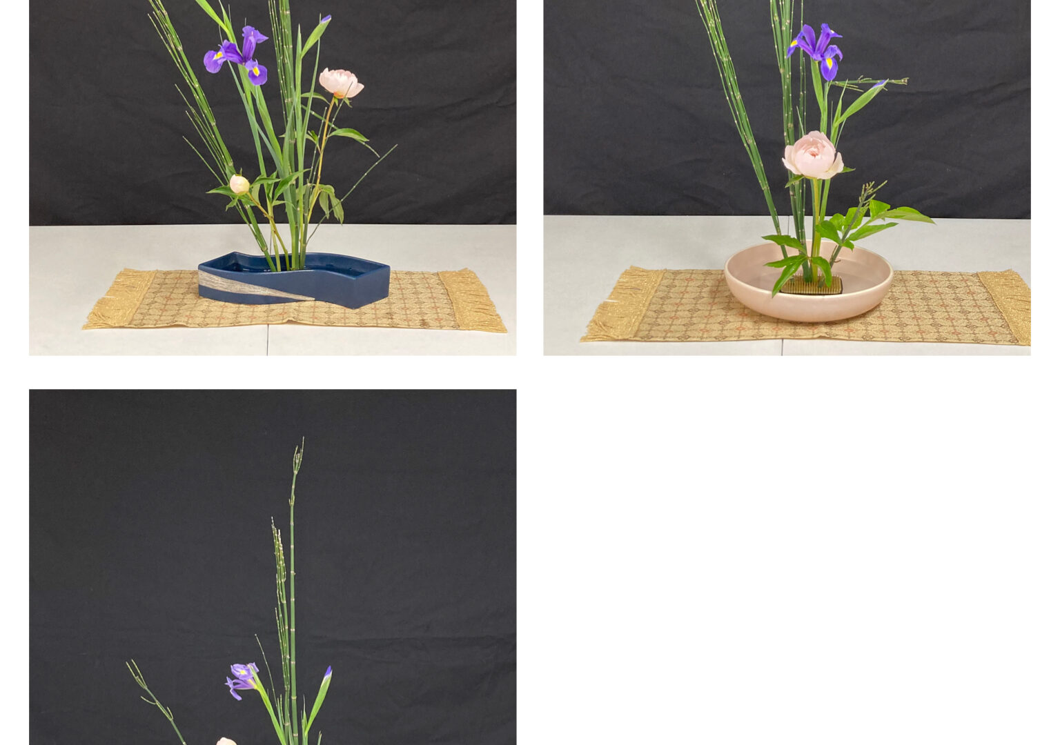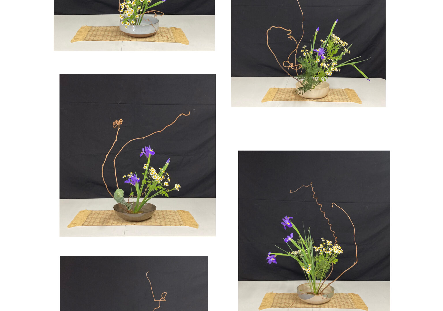 Nous avons étudié la forme en bas avec les vignes vierges. La couleur d’automne nous attire toujours lors de composer l’ikebana!