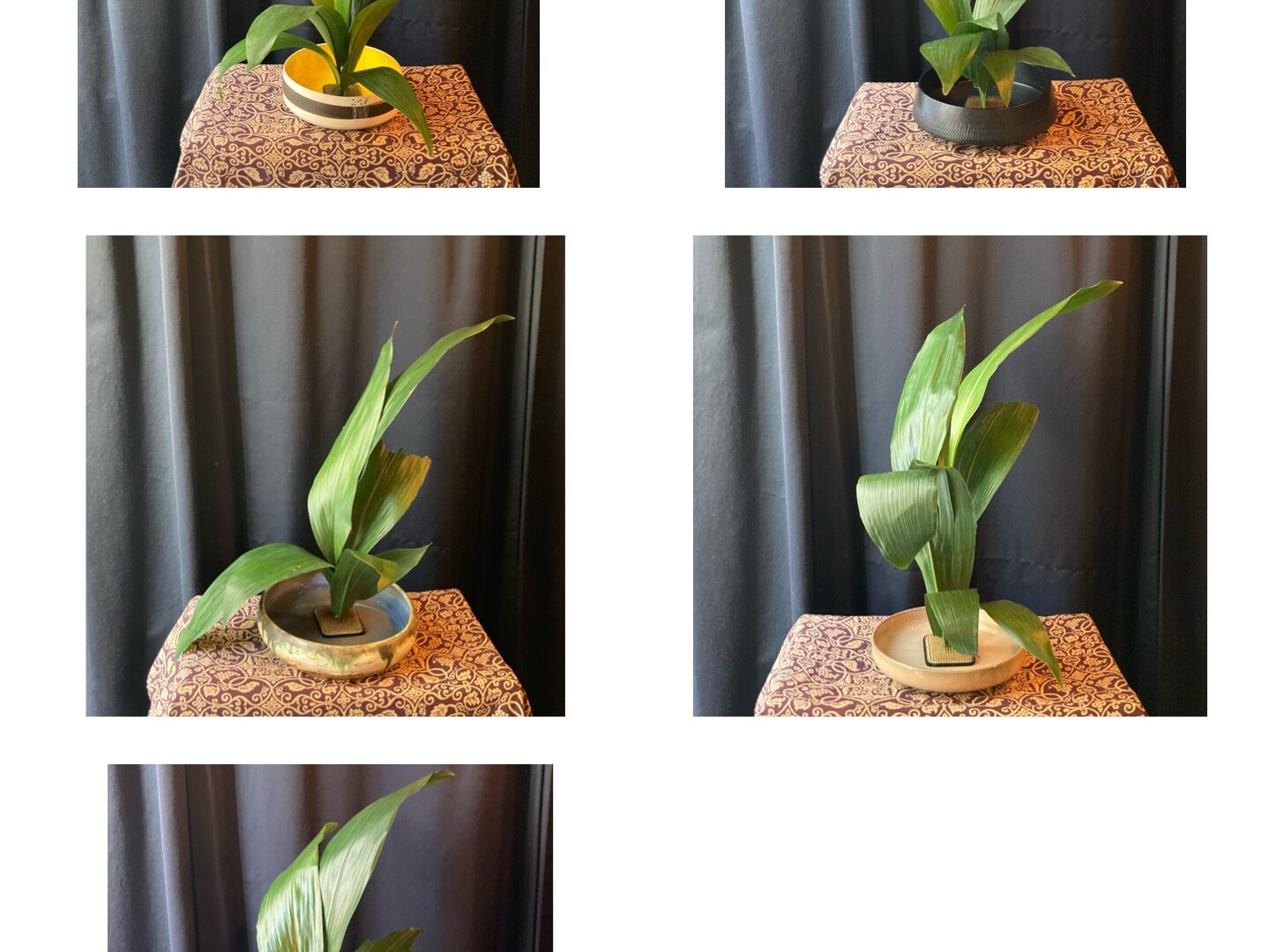 Nous avons pratiqué la forme avec des feuilles d’aspidista aujourd’hui aussi. Les feuilles sont plus dificile de composer car elles sont en deux dimensions, mais tout le monde a bien manipulé les feuilles!