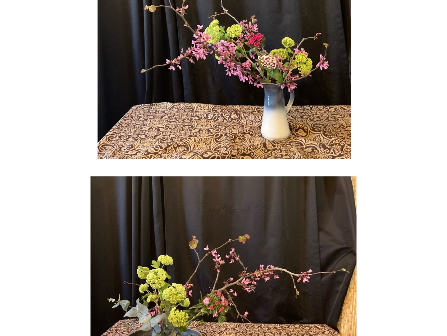Atelier d’ikebana le 30 mars Nous avons utilisé des branches d’arbre de Judée puisque c’était en plein floraison.