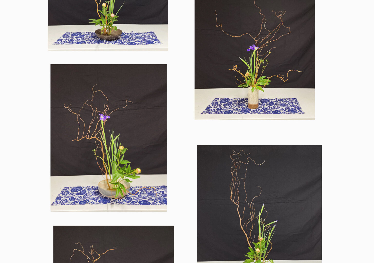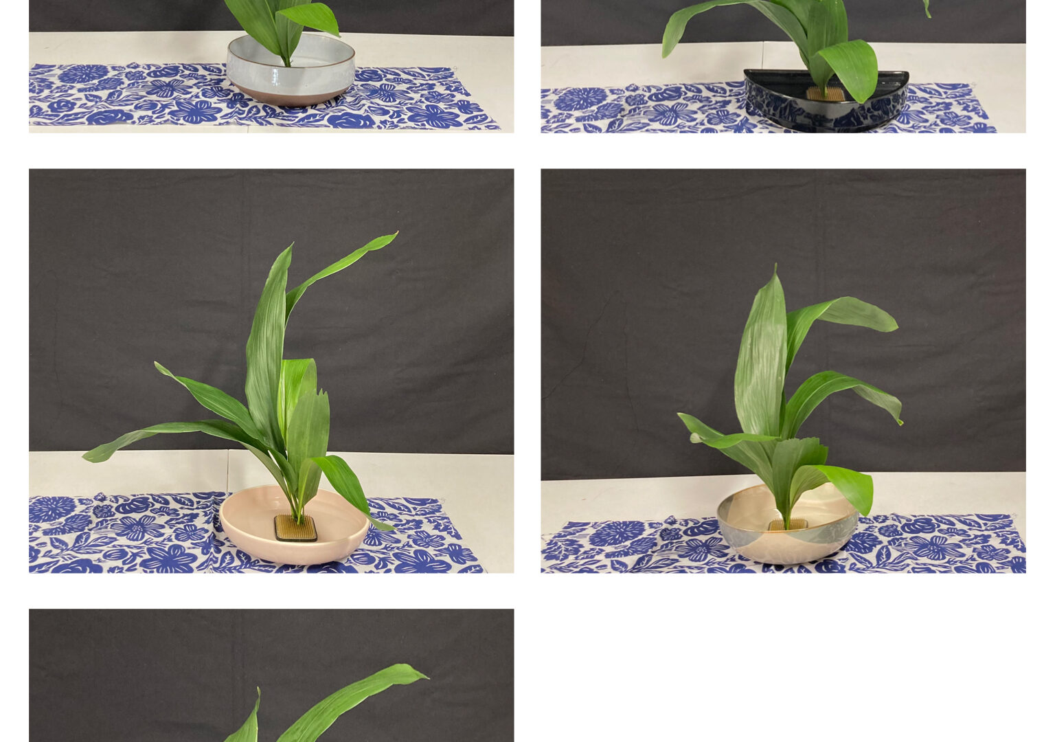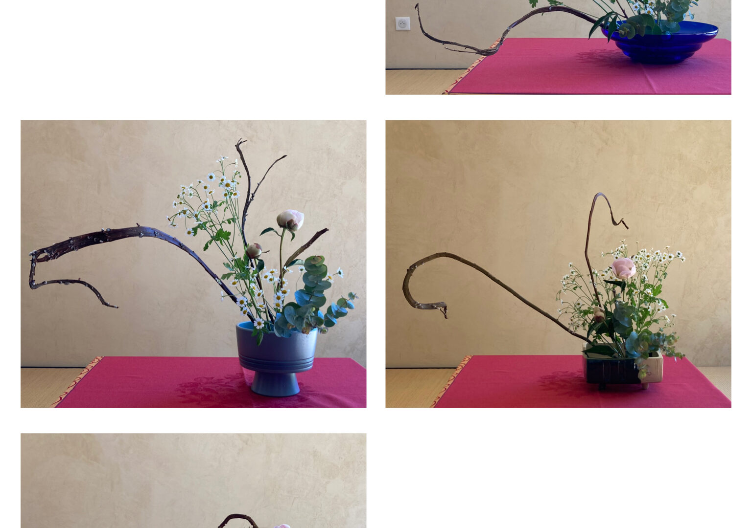 Nous avons étudié l’ikebana en employant des ruscus d’Italie.