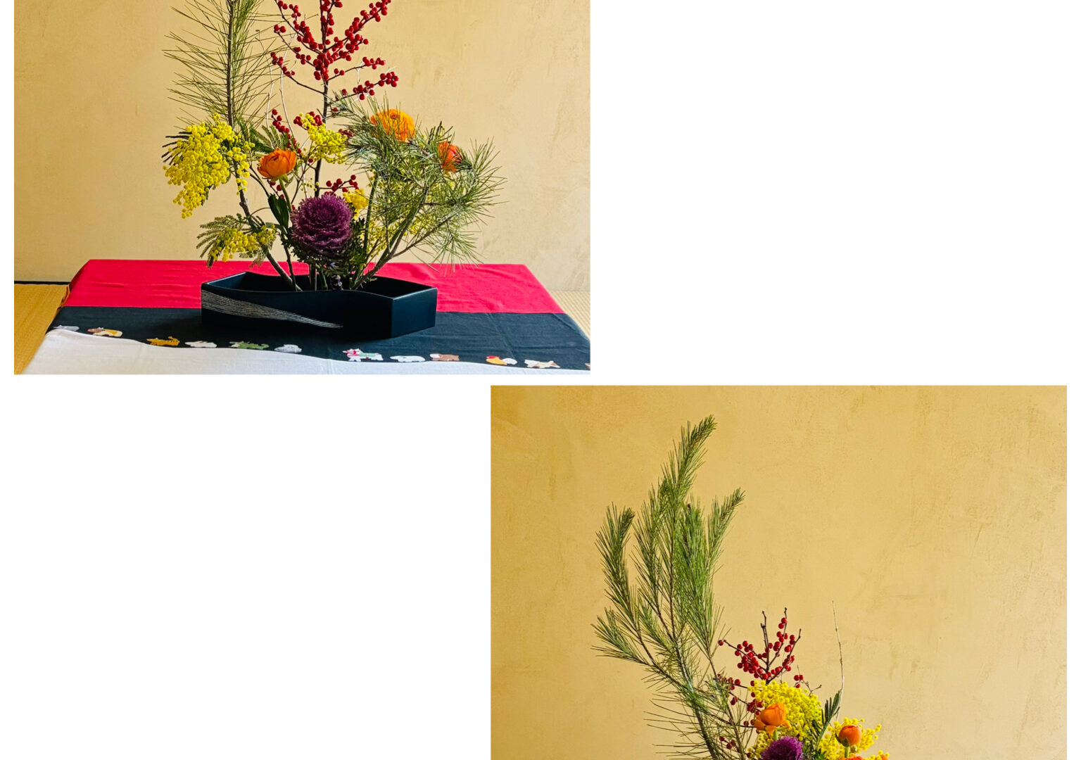 Nous avons créé des ikebanas pour le Nouvel An. Je vous souhaite une bonne fin d’année!