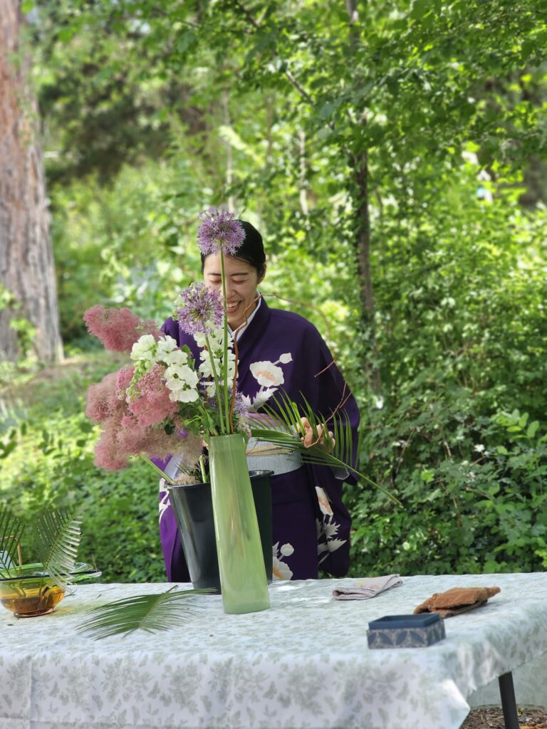 Concernant l’Ikebana, j’ai commencé à l’apprendre en 2017 à l’école Kidou-mishoryu qui est très connue au Japon. J’ai reçu l’enseignement de Maître SUGISAKI Suizan qui est le troisième Iemoto (professeur en chef) de cette école. En 2021, j’ai obtenu ma qualification pour enseigner cet art dans le style de l’école Kidou-mishoryu.